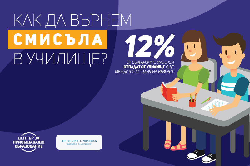 Според национално представителното проучване на Центъра, 30% от шестокласниците в България са в риск от отпадане от училище, а цели 45% от тях смятат основните предмети като математика, история и природни науки за напълно безинтересни.
