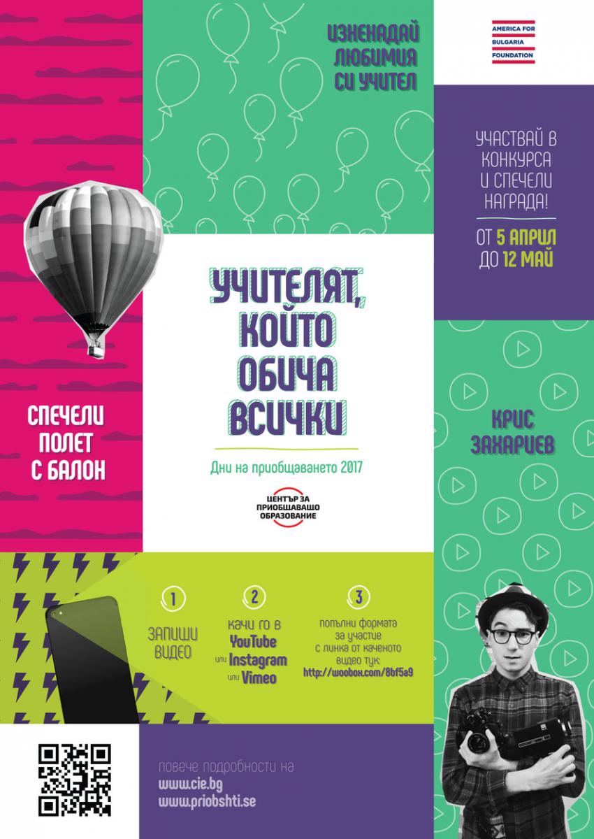 Започва националното търсене на Учителя, който обича всички. По случай Дни на приобщаването 2017 Център за приобщаващо образование и блогърът Крис Захариев канят ученици от цялата страна да направят нещо незабравимо за един свой учител.