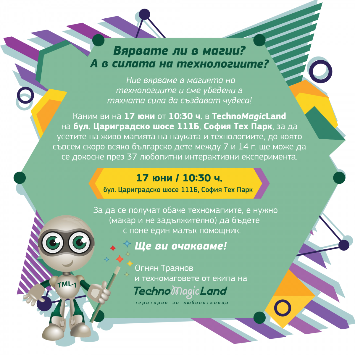 Всички, които вярват в магическата сила на технологиите, а и тези, които не са съвсем наясно с чудесата на науката, могат да проверят нагледно знанията си и да добият нови в технологичния център TechnoMagicLand, който отваря врати официално в средата на юни на площ от близо 1300 кв.м. в София Тех Парк.