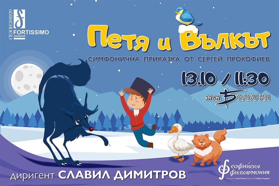 Концертен комплекс “България” кани малчугани на "Петя и вълкът" - красива симфонична приказка, в която чрез игра и забавление малчуганите се запознават с едно от най-любопитните произведения на руския композитор Сергей Прокофиев.