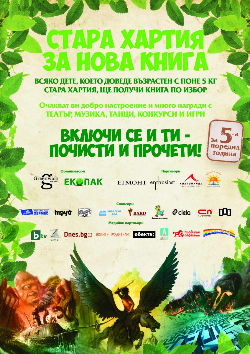 Всяко дете, което доведе възрастен придружител с поне 5 кг стара хартия за рециклиране, ще получи нова детска книга по избор, както и подаръци от партньорите на празника.