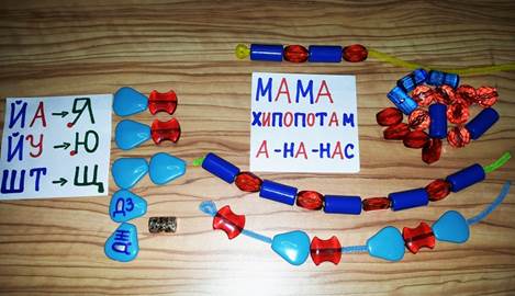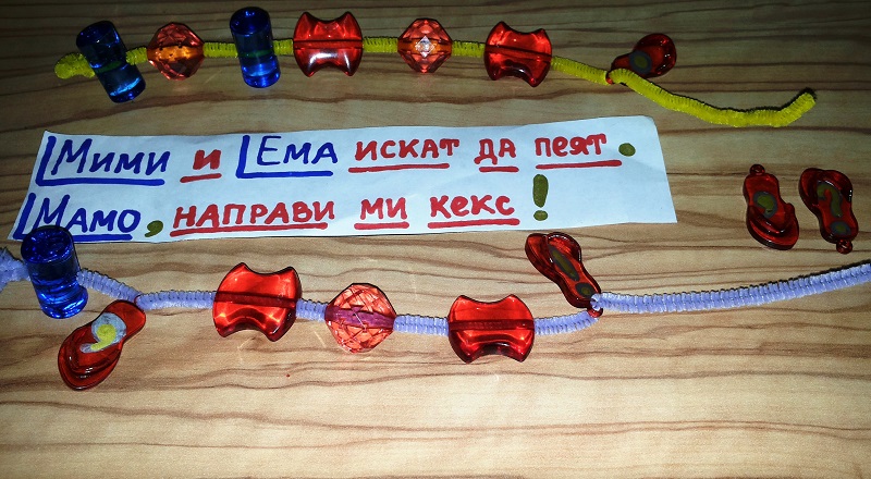 "Решихме да поиграем, като заместим сините и червените квадратчета за звукови модели на думите с шарени мъниста с различни размери", обяснява Мария.
