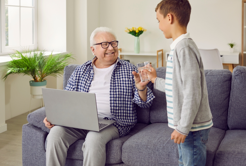 Дете поднася чаша вода на дядо си. Снимка: Shutterstock
