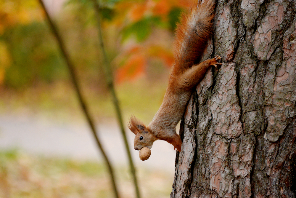 Катеричка с жълъд в устата. Снимка: Shutterstock