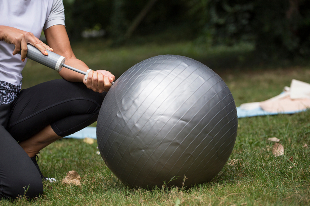 Баща надува с помпа топка. Снимка: Shutterstock