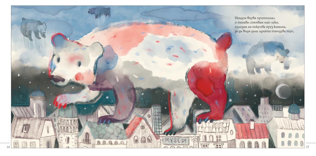 Петрунова е уловила както поетичната лекота, така и хумористичната дълбочина на оригинала, а рисунките на Григоров пресъздават закачливостта и меланхолията на Кортасаровия свят. Освен с текста художникът се заиграва и с шедьоври на изобразителното изкуство – като емблематичния „Танц” на Анри Матис, пресъздаден тук с деликатна четка и бодра мечешка стъпка. Има и други намигвания, които читателите ще открият сами.