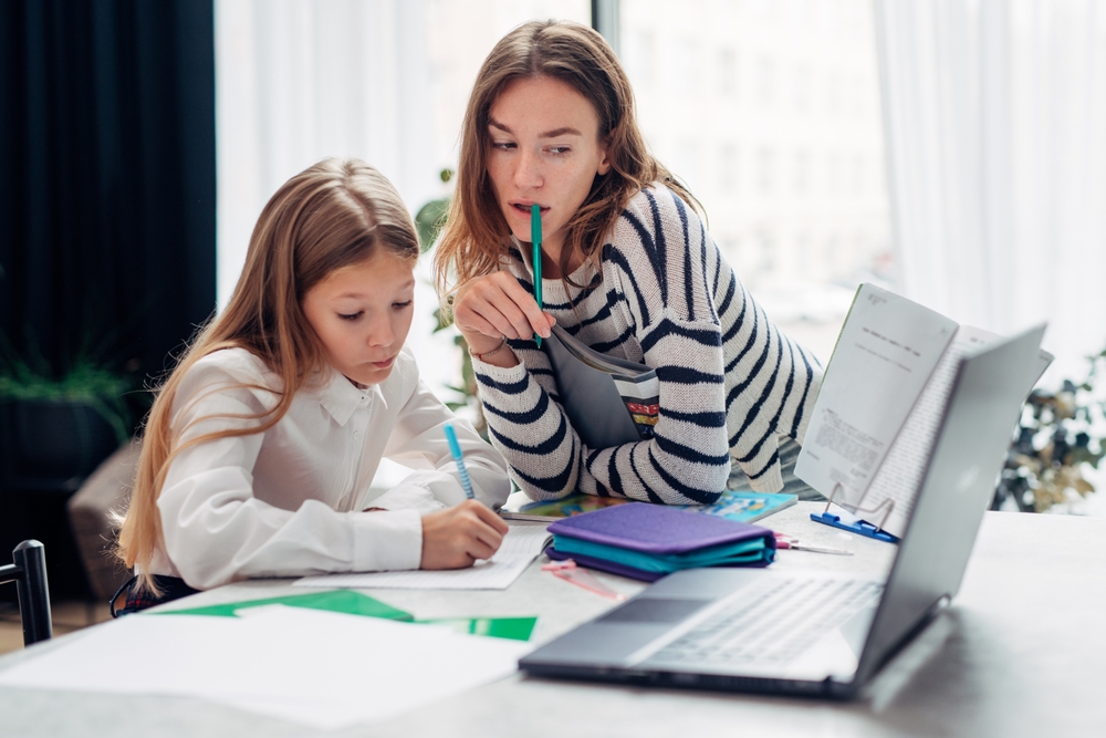 Майка помага на детето за домашните. Снимка: Shutterstock