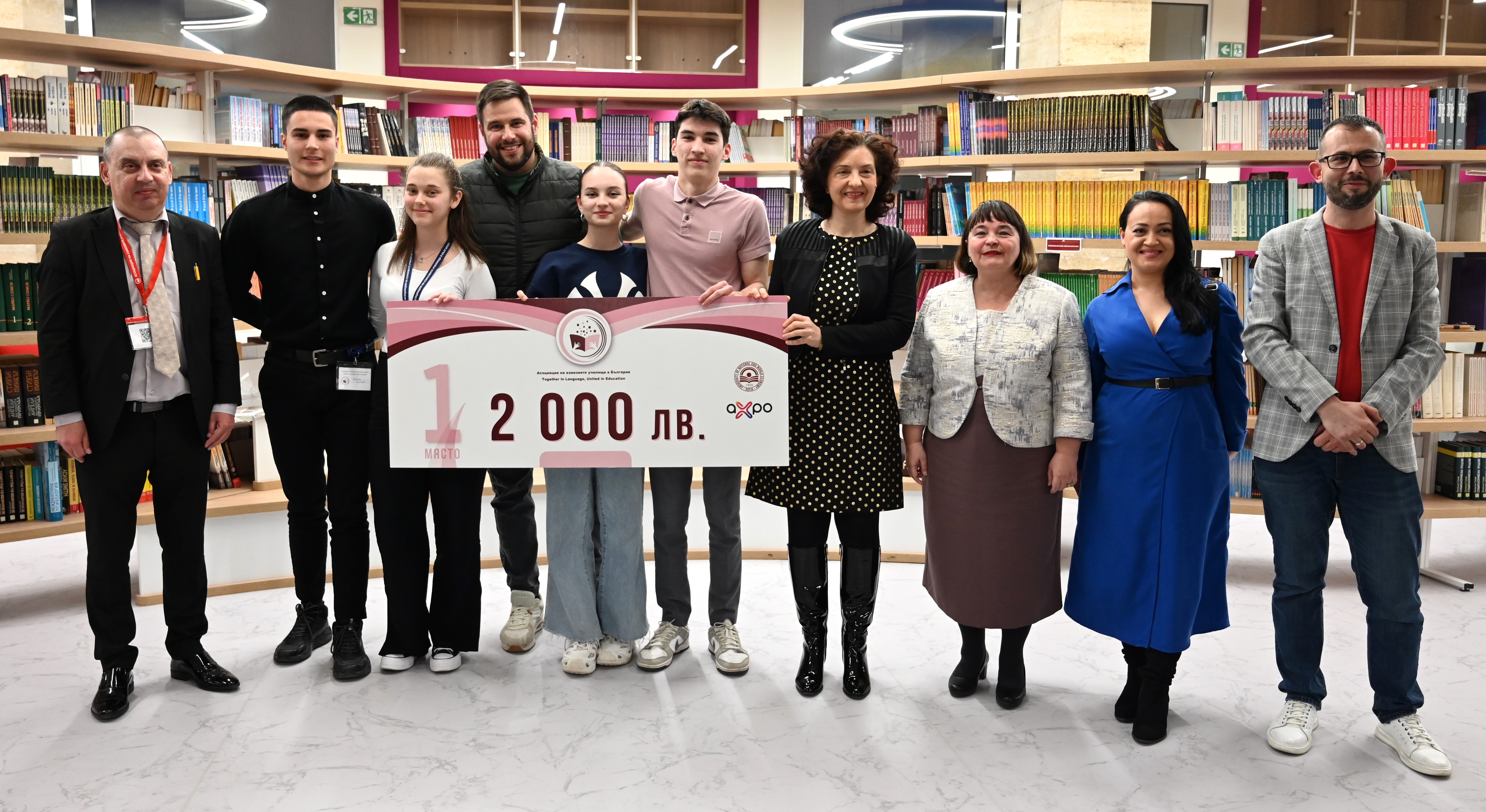 Отборът от Гимназията с преподаване на чужди езици „Симеон Радев“ – гр. Перник е големият победител в първото състезание на създадената през миналата година Асоциация на езиковите училища в България (АЕУБ). Калоян Стоянов, Даяна Никифорова, Дамян Петров и Виктория Радева, заедно с първото място спечелиха и 2000 лв., осигурени от генералният спонсор на състезанието AXPO-България.