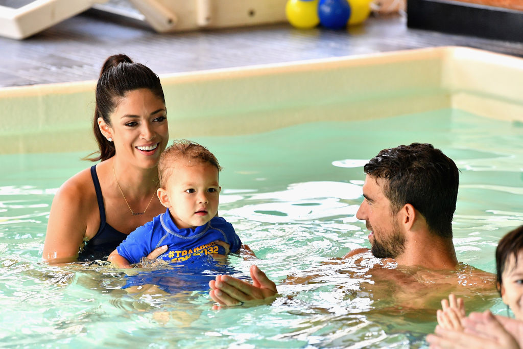Никол Фелпс, Бумър Фелпс и Майкъл Фелпс присъстват на Huggies Little Swimmers # trainingfor2032 - събитие на фондация Фелпс на 21 август 2017 г. в Ню Йорк.