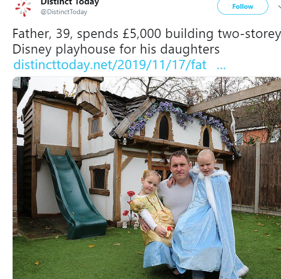 39-годишният британец Ричард Торнтън построи за дъщерите си истинска къщичка от приказките. Той издигна дом като на принцесите на анимационните филми на Disney.