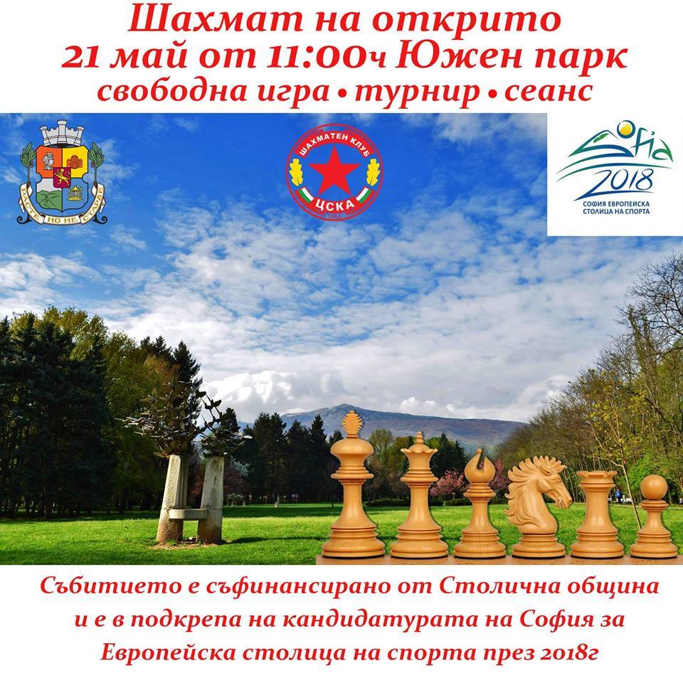 Шахматен клуб ЦСКА организира нов турнир за деца, този път на открито. Състезанието е на 21 май в Южния парк - край паметника с птиците, който се намира на централната алея на входа откъм бул. „Витоша”.