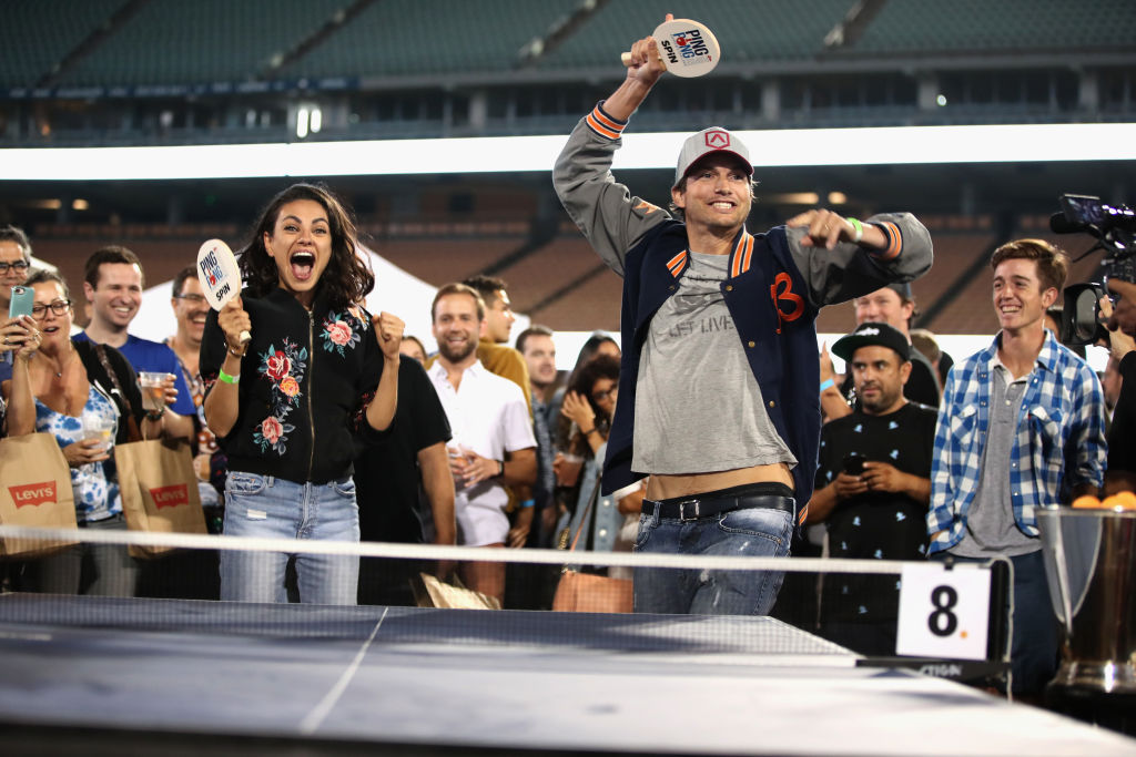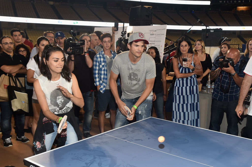 Мила Кунис и Аштън Кучър в разгорещен сет на 6-ия годишен турнир Clayton Kershaw в Лос Анджелис, Калифорния, снимка: Guliver / Getty Images