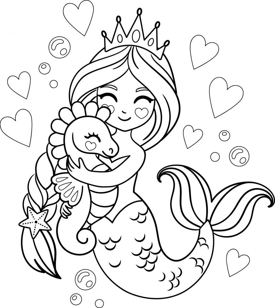 Оцветяването е много полезно за най-малките, защото ги учи не само на фина моторика, но и да разпознават по-добре различните нюанси на цветовете, както и да ги използват правилно или според фантазията си. При всички случаи освен много забавно, това е и полезно за развиване на техните умения. А русалките, които са нашата днешна тема за оцветяване, както добре знаем, са много любими за рисуване, особено на малките момиченца.