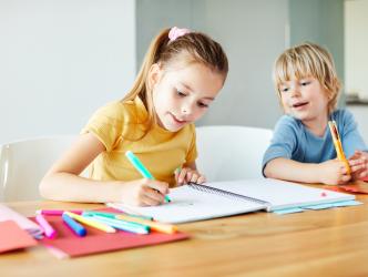 Майка с две деца в леглото държи книга на главата си. Снимка: Shutterstock