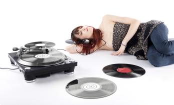 Момиче слуша грамофон с винилови плочи. Снимка: Shutterstock