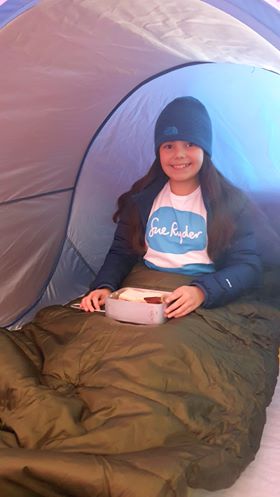 За да направи приключението си колкото е възможно по-реалистично, започвайки от 9 мей, когато ѝ се отдава да достигне височината на базовия лагер, в подножието на Еверест, Еви спи всяка нощ в палатка.