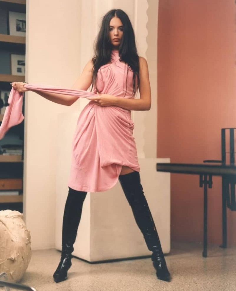 Сред тях имаше и необичайни комбинации, като розова рокля и високи черни ботуши от лъскава кожа.