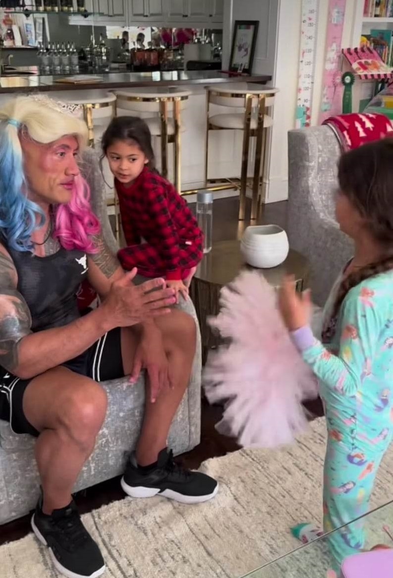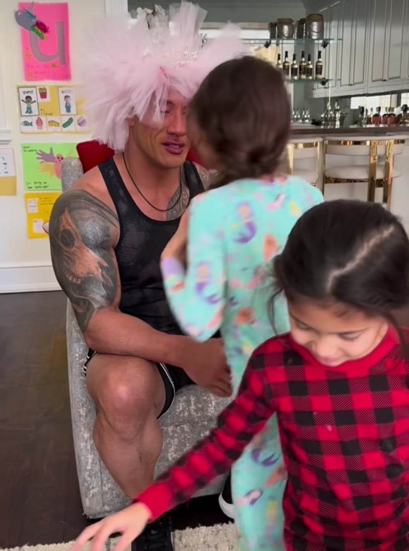 Дъщерите на Дуейн Джонсън му сложиха празничен грим