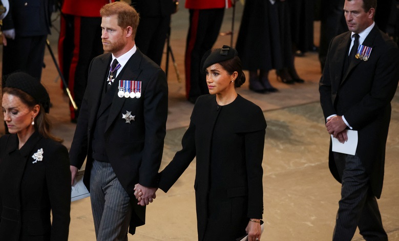 “Хари и Меган са скърбящи роднини и не трябва да следват кралския протокол. Те се държат за ръце, за да се подкрепят емоционално след тази загуба”, каза експертът по езика на тялото Инбаал Хонигман пред таблоида Daily Express.