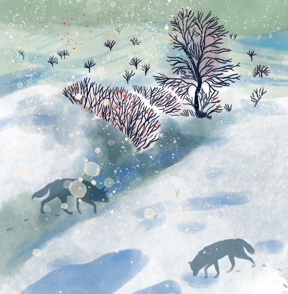 Бялата приказка на уелсеца започва така: „Коледите толкова си приличаха през онези години, останали зад ъгъла на морското градче и съвсем заглъхнали, ако не се смятат далечните гласове, които чувам понякога миг преди да заспя, че никога не мога да си спомня дали е валял сняг шест дни и шест нощи, когато бях на дванайсет, или е валял дванайсет дни и дванайсет нощи, когато бях на шест.”