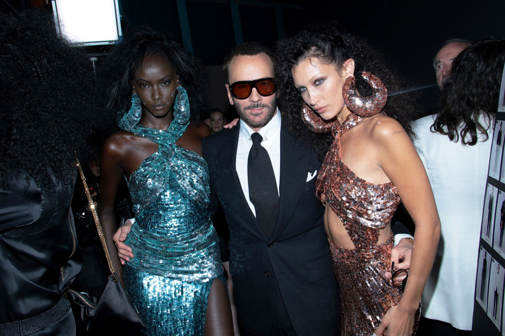 Всички тези творения на Том Форд бяха представени на модния подиум от модели от А-листа: сестрите Бела и Джиджи Хадид, Лия Кебеде, Мариакарла Босконо.