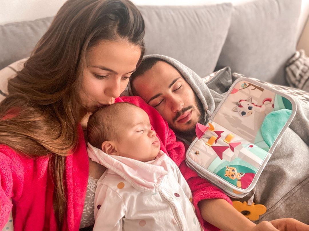 Бутилки с вода..изобщо с каквото се сетиш.“, написа тя до кадър, в който прави упражнения с ластици на педя разстояние от дъщеричката си Амая. Вече десетина дни социалният ѝ живот с бебето е ограничен до затворения двор на кооперацията, като при всяко напускане на дома и Теа, и Наум са дегизирани с маски, очила и носят дезинфектанти.