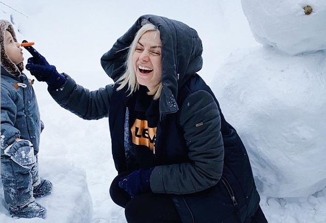 Певицата пусна детето в шейна по заснежен склон, докато отправяше своя призив към последователите си в социалните мрежи да се включат в инициативата.