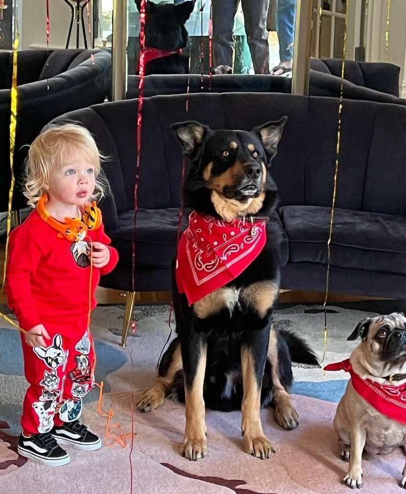 Това се потвърждава и кадър, на който той позира заедно с домашни любимци: овчарка Коломбо и смес от ротвайлер и френски булдог.