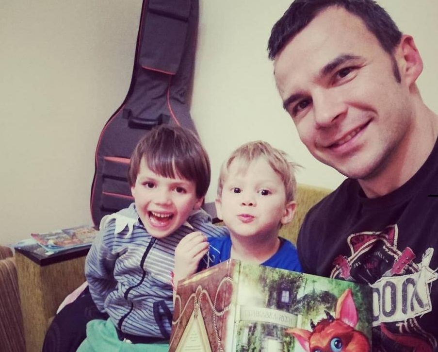 6-годишният Филип и 5-годишният Дамян обикновенно допринасят за тонуса и забавлението вкъщи и като участници, и като жива в тежест в упражненията на баща си – той ги слага в кенгуру за разходки на гърба си и работи за крака, след което всички дружно наваксват с подскоците.