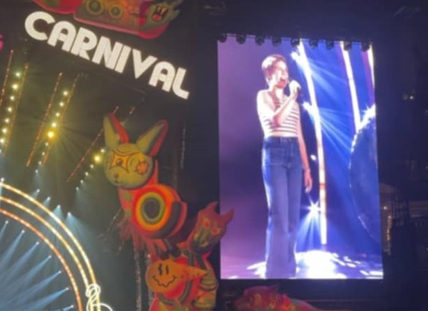 Кери пусна пост в социалните мрежи, за да направи трогателно съобщение до съпругата си. Той публикува и снимкеи невероятното шоу на стадиона, което вече счупи рекорди. От старта си през миналата година то донесе печелба от 472 милиона долара.