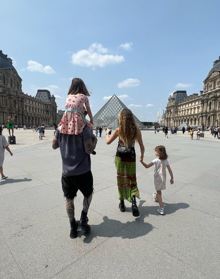 Адам Ливайн и Бехати Принслу с децата в Париж. Снимка: Instagram