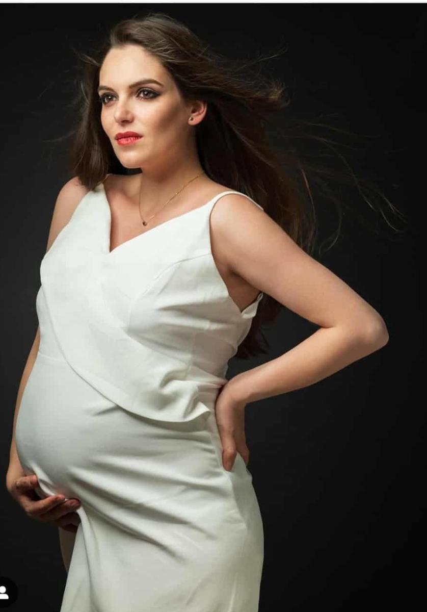 До последно актрисата, която набра особена популярност с ролята си в сериала "Откраднат живот", не съобщи новината, че заедно със съпугът й фотографа Владимир Томашевич чакат бебе и опитваше да прикрива бременността си.