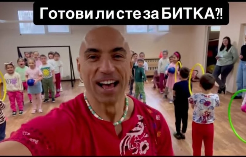 С бойния вик от „Игри на волята“ - „Готови ли сте за битка“ той строи отборите от хлапета от 39-а детска градина „Пролет” в Овча Купел.