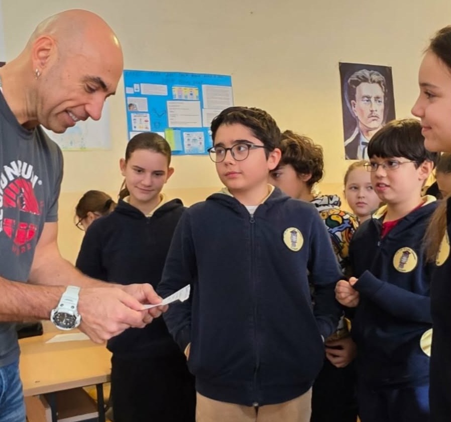 Алекс с ученици от 5 б клас.  Снимка: Instagram