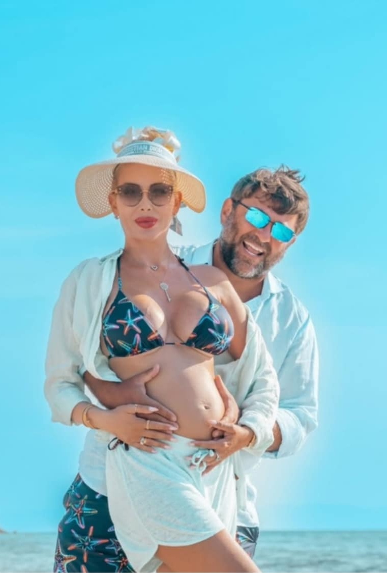 Антония Петрова пусна поредица от снимки по бански, на които позира в прегръдките на съпруга си Йвайло Батинков, с видимо закръглено коремче.