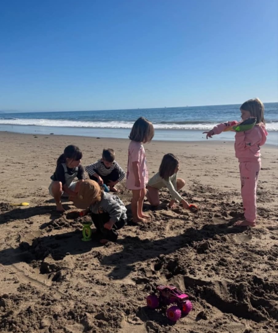 Малките Дъсти Роуз и Джио Грейс с други деца играят на плажа. Снимка: Instagram