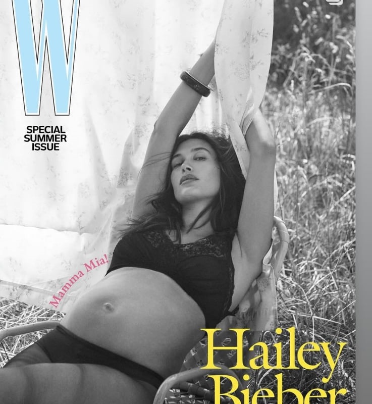 След като влезе в шестия месец, Хейли стана героиня на специалния летен брой на W Magazine.