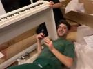 Сашо Кадиев сглобява новото пиано. Снимка: Instagram