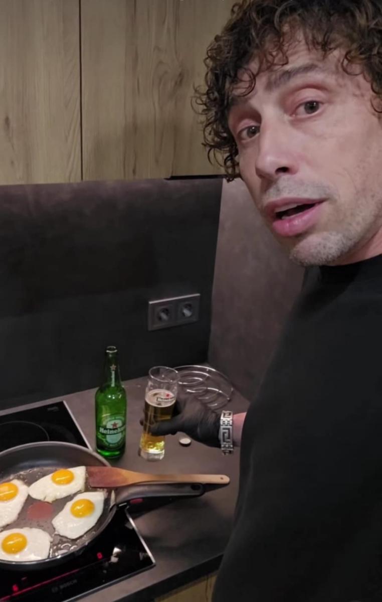В клип в социалните мрежи дори показа как се справя и сам се похвали, че отсича жълтъка и белтъка по равно, като с рулетка.