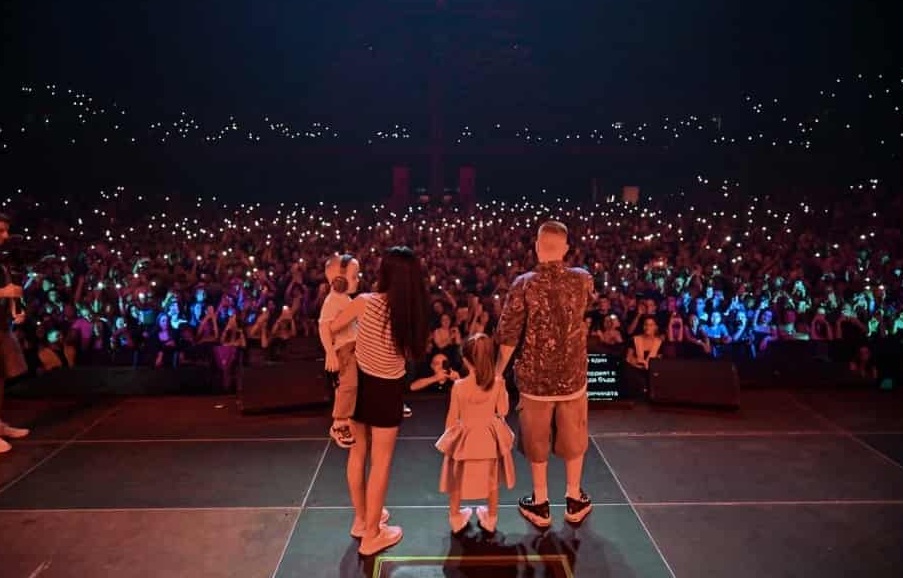Криско на сцената на зала „Колодрум“ със семейството си. Снимка: Instagram