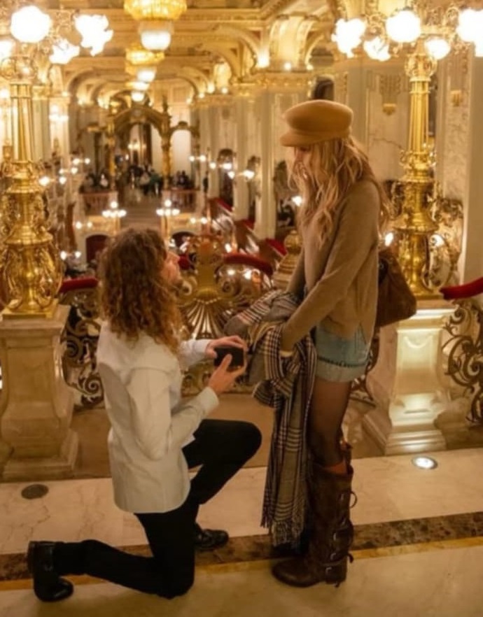 Годежната поредица от кадри е увенчана с близък план на слагането на халката – същата, която са снимали папараците.