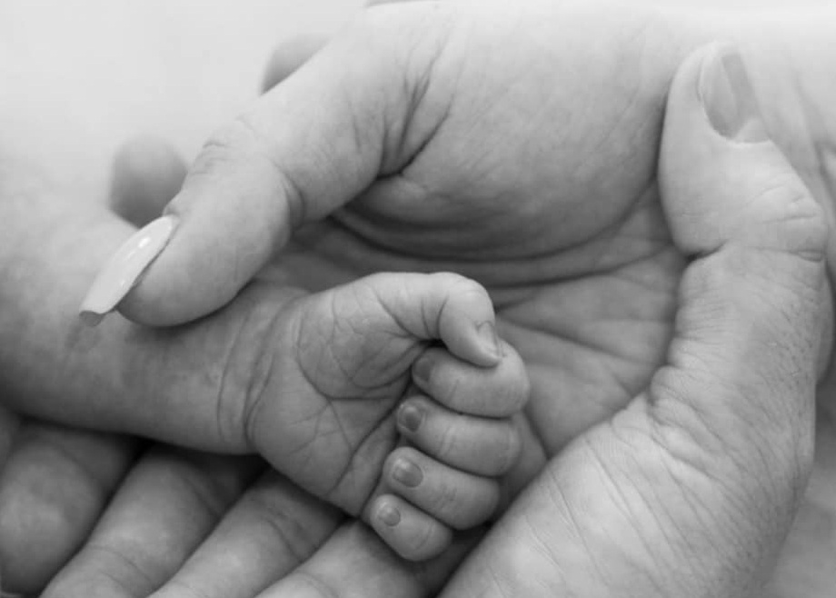 На черно-бялата снимка се вижда малката ръчичка на бебето. То се роди преди седмица - на 29 март.