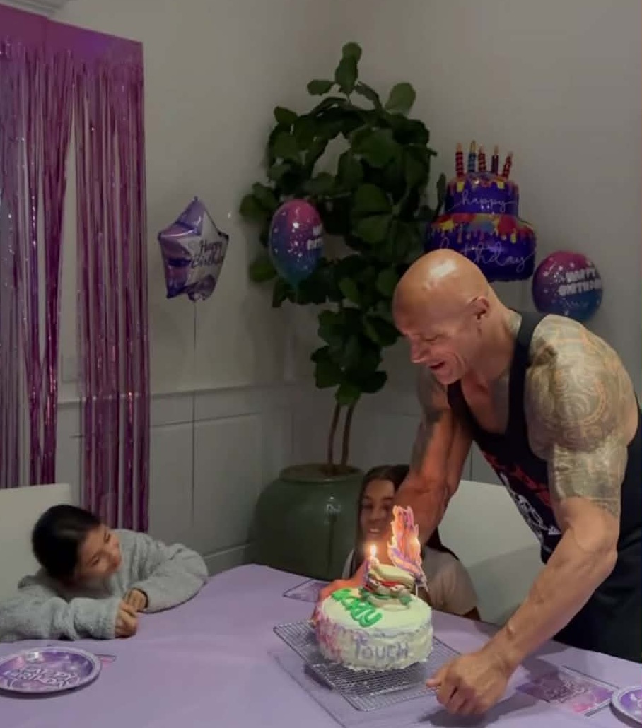 Най-малката дъщеря на актьора и борец, Тиана, отпразнува 8-ия си рожден ден у дома, заобиколена от семейството.