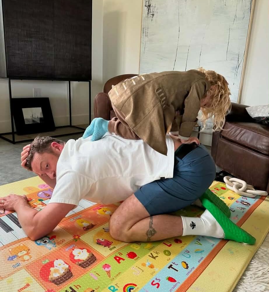 Джъстин Тимбърлейк си играе с Финеас . Снимка: Instagram