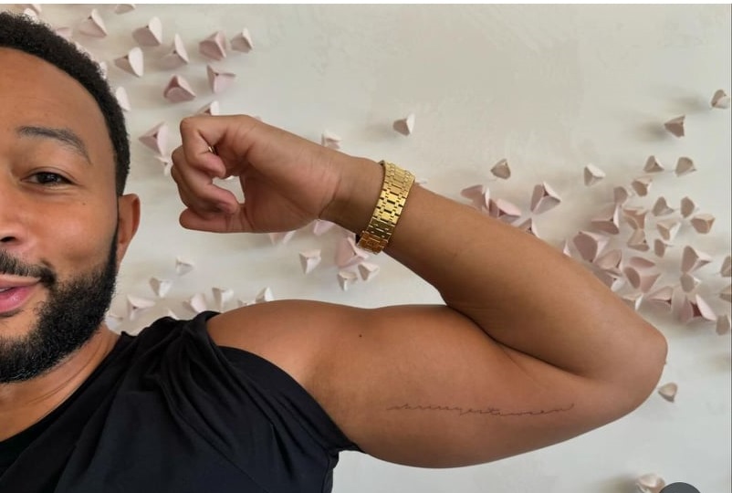 Джон Леджънд направи приятна изненада за съпругата си Криси Тейгън и децата им. Той показа нова сантиментална татуировка, която се виждат имената на жена му и на по-малките му деца. Музикантът актуализира татуса, за да включва имената на Ести и Рен.