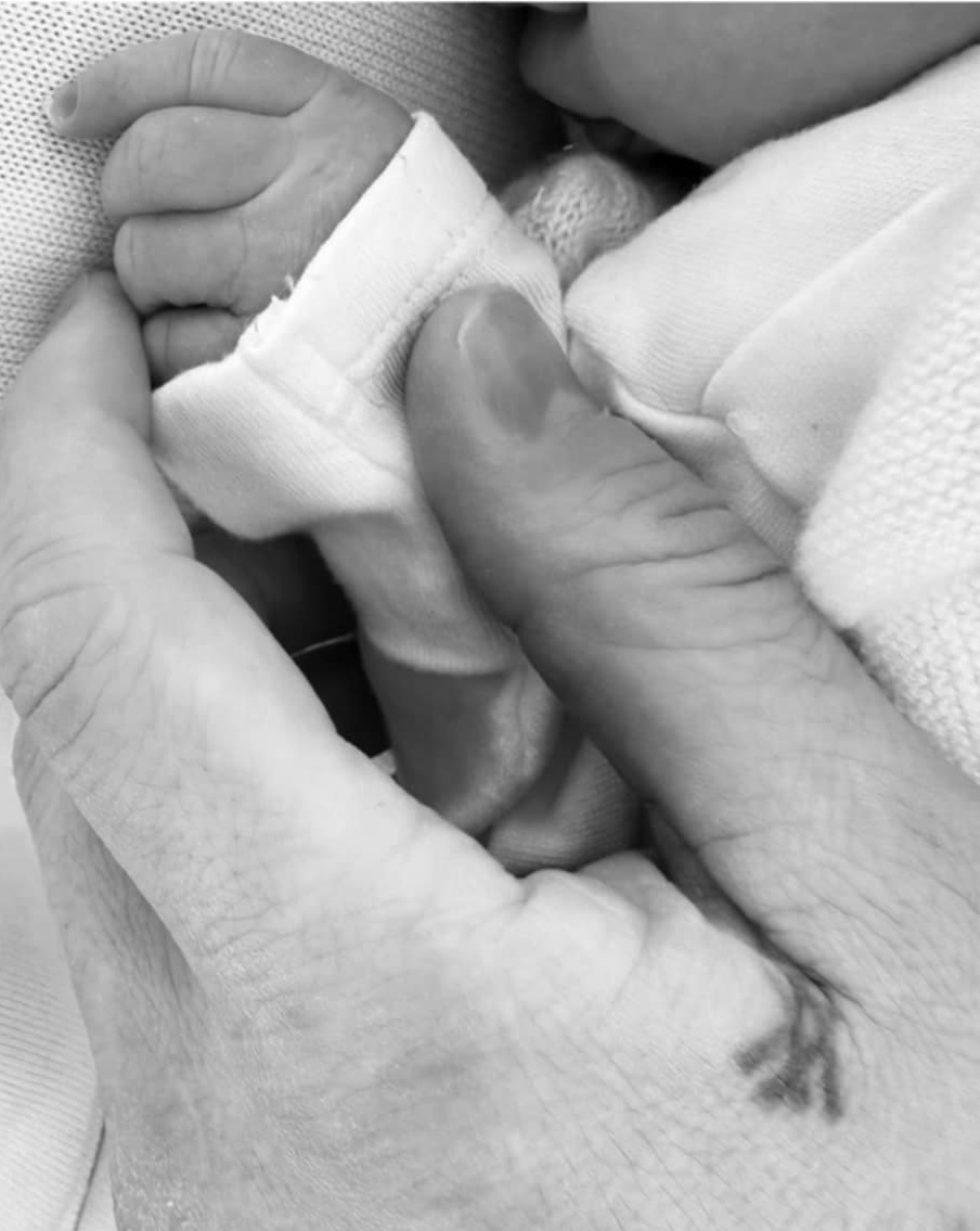 А под традиционната снимка на малката бебешка ръчичка, щастливите родители разкриха и името на бебето.