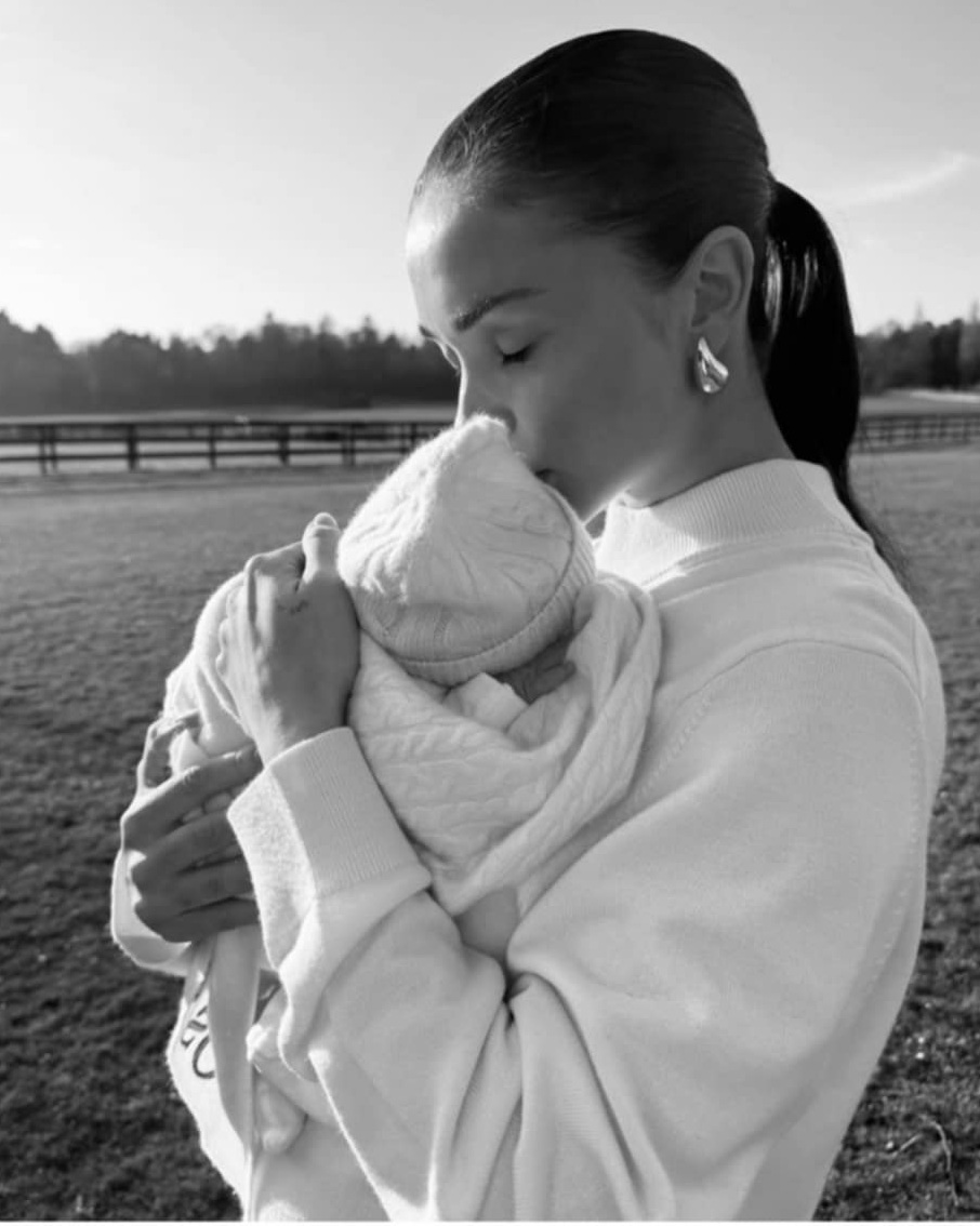 Ейми Джаксън гушка новородения си син. Снимка: Instagram