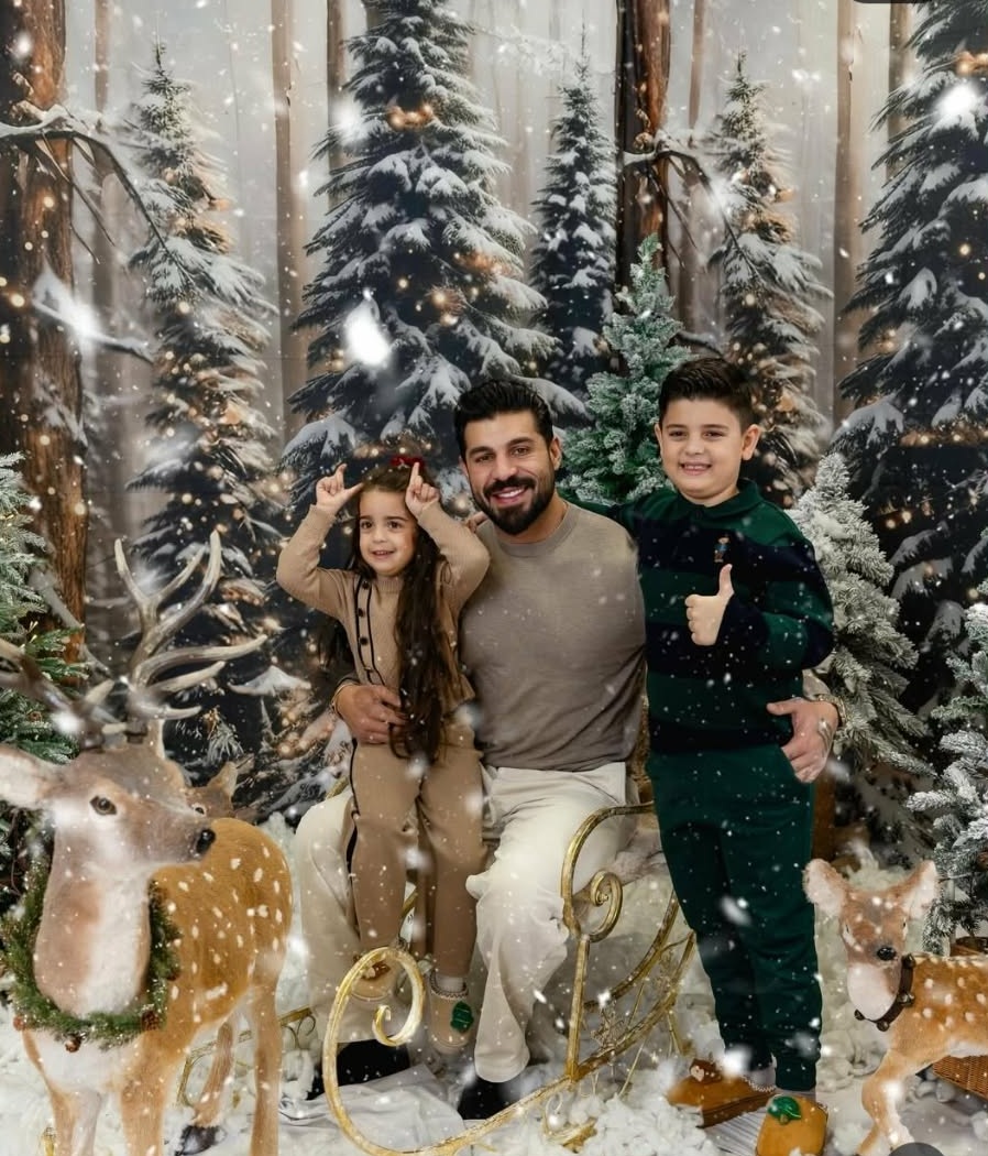 Фики показа няколко празнични версии на портрет на цялото семейство - красивата му съпруга Гюлджан и децата Еслем и 5-годишния Тони, в различна обстановка.