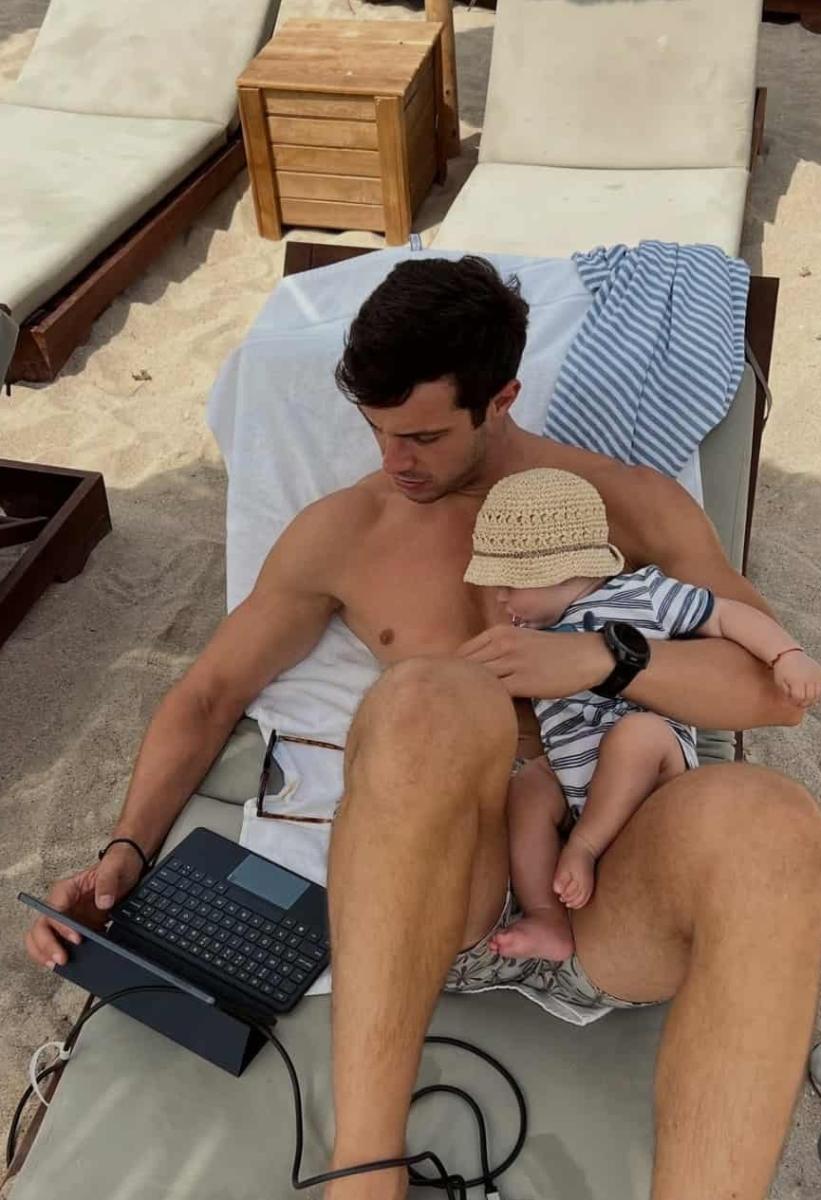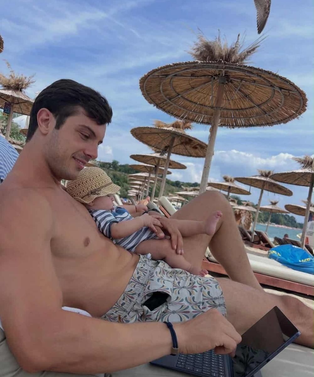 Филип Буков с бебе на плажа. Снимка: Instagram