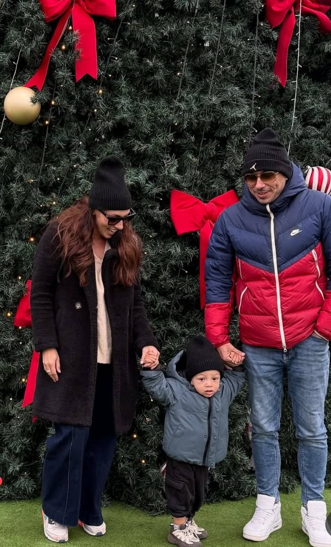 Заедно със съпруга си Симоне Колио и 2-годишния Тиаго те позират пред огромна елха. А друга снимка показва как Тиаго се вози на въртележката в коледна шейна.